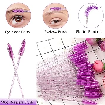 - 【Disposable Eyelash Brush】There are 50pcs disposable brush Mascara wands, which is an essential tool for eye makeup. The brush head can be bend slightly as you need, perfect for separating eyelashes before or after mascara application, make your eyelashes look curlier and eyes look bigger and brighter with this gadget.