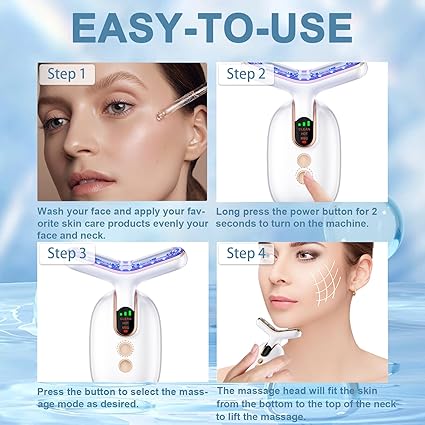 - Easy to use:This beauty device is not only small and portable in design, but also easy to operate. Simply apply your favorite skin care products to your neck and face, then use the massage head to gently lift and shape the neck area from bottom to top