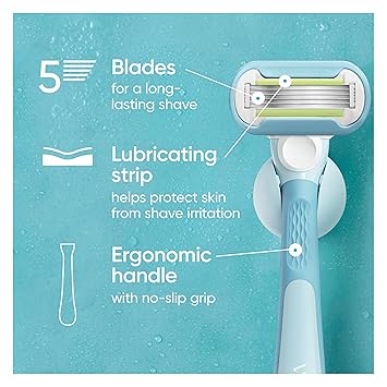 Gillette Venus Extra Smooth Women's Razor with Reusable Handle, 5 Blade Refills and Shower Holder