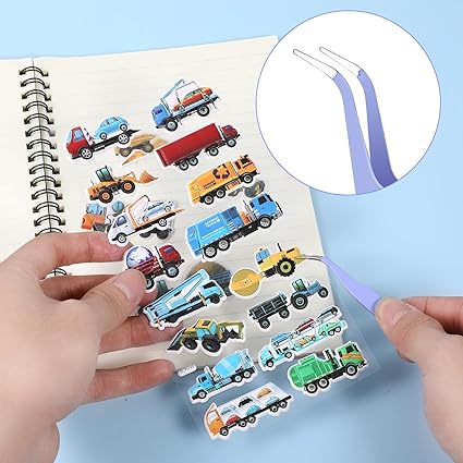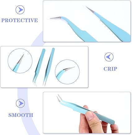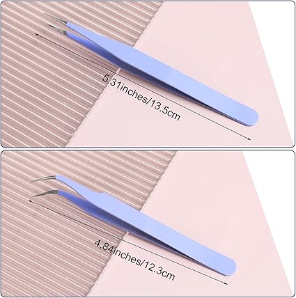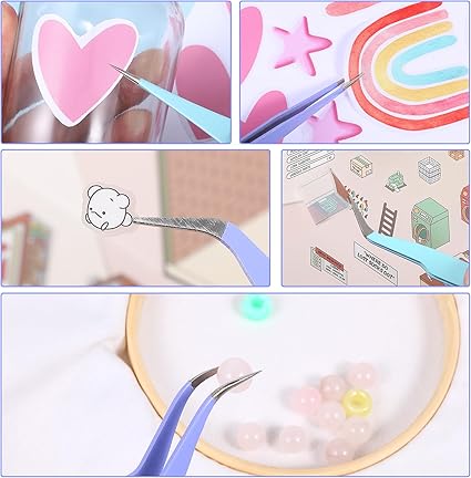 Sticker Tweezers, 4 Pcs Straight Curved Tweezers Nippers Eyelash Tweezer Stainless Steel Craft Kit for Crafting, Stickers, Lashes Extensions, Jewelry Making, Purple/Blue