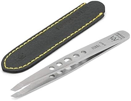 GERMANIKURE Professional Perforated Slanted Tweezers - FINOX Stainless Steel Sharp in Leather Case Ethically Made Solingen, Germany 4403