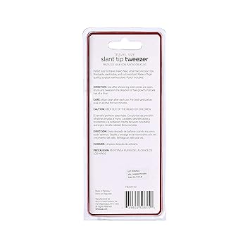 Travel Size Slant Tip Tweezer with Pouch, Ultra-fine precision tip, Stainless steel (TWZ04)