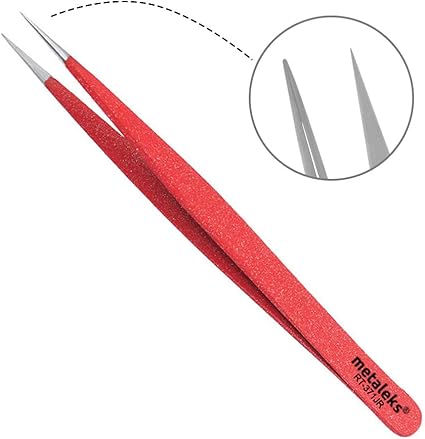 Stainless steel point tip design that is durable and easy to clean. protective tip covers included so tweezers never lose alignment.