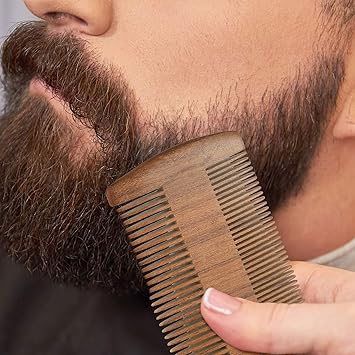 - Quality material: beard comb is made of natural sandalwood, anti-static and soft on hair, wooden comb nourishes your beard and hair, use it with your favorite beard oil or beard balm, combing promotes moisture and shine, which can be applied for a long time