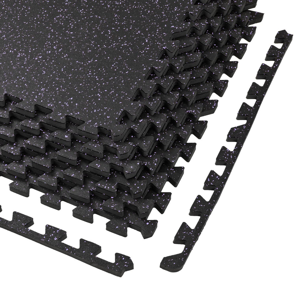 Details: The Xspec rubber top EVA interlocking foam mats are constructed from durable, and non-toxic, eco-friendly EVA foam and high density rubber. Its thick, reversible construction is perfect for MMA, karate, jujitsu gymnastics or other impact sports. Each kit comes with (12) 24' x 24' x 1/2' interlocking padded tiles for a total of 48 sq ft of coverage. These are a great addition to your home gym and provides you with a comfortable spot to do floor exercises such as gymnastics, tumbling, wrestling, and yoga. With the interlocking system, you could create your own floor plan with ease as they come apart and easily lock together. Features Each square comes with 2 borders Durable EVA Foam with Dense Rubber Top BPA Free. Heavy Metal Free. Phthalates Free. Flexible and Shock Absorbing Convenient Interlocking Design Easy Pick Up and Storing Wipes Clean Note: Color may vary slightly due to different monitor settings. Specifications Each mat measures: 24'' x 24'' x 0.5'' Set of 12 Mats Covers 48 sq ft Entire set weighs 30 lbs Please note, our unique interlocking design may not work with other brands. We recommend to set the product in an open area with ventilation for 24 hours before use. Excessive weight may cause indents on the tiles.