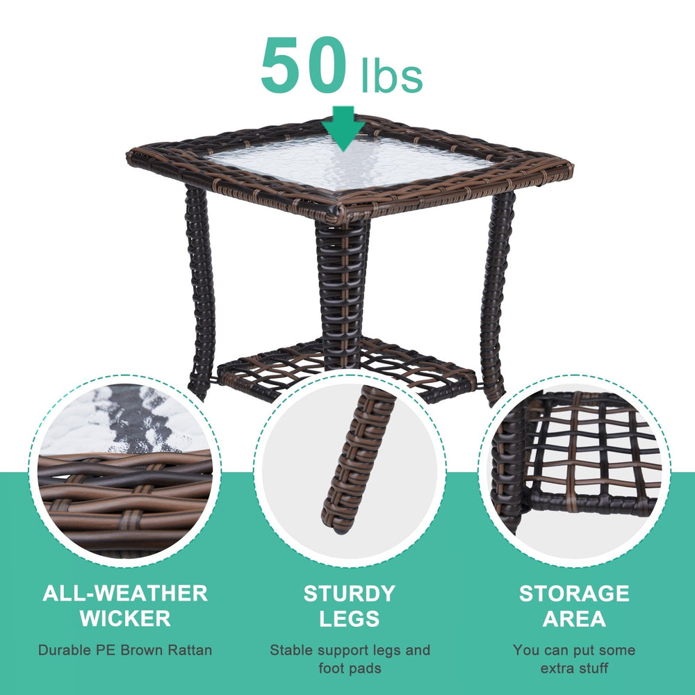 Buytoshop Outdoor Patio Square HDPE Side Table,Black