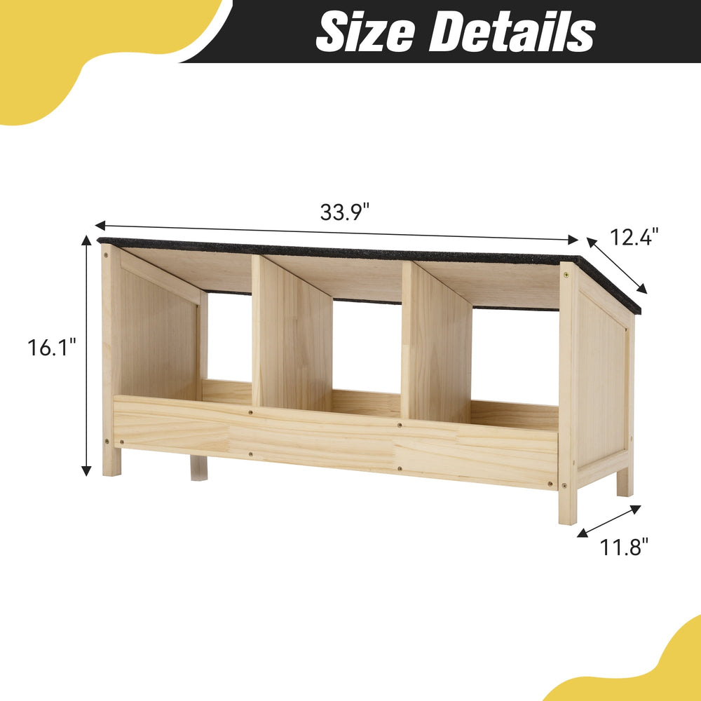 Chicken Coop with Waterproof Roof Wood Cage with 3 Nest Areas 33.9"x16.1"x11.8"