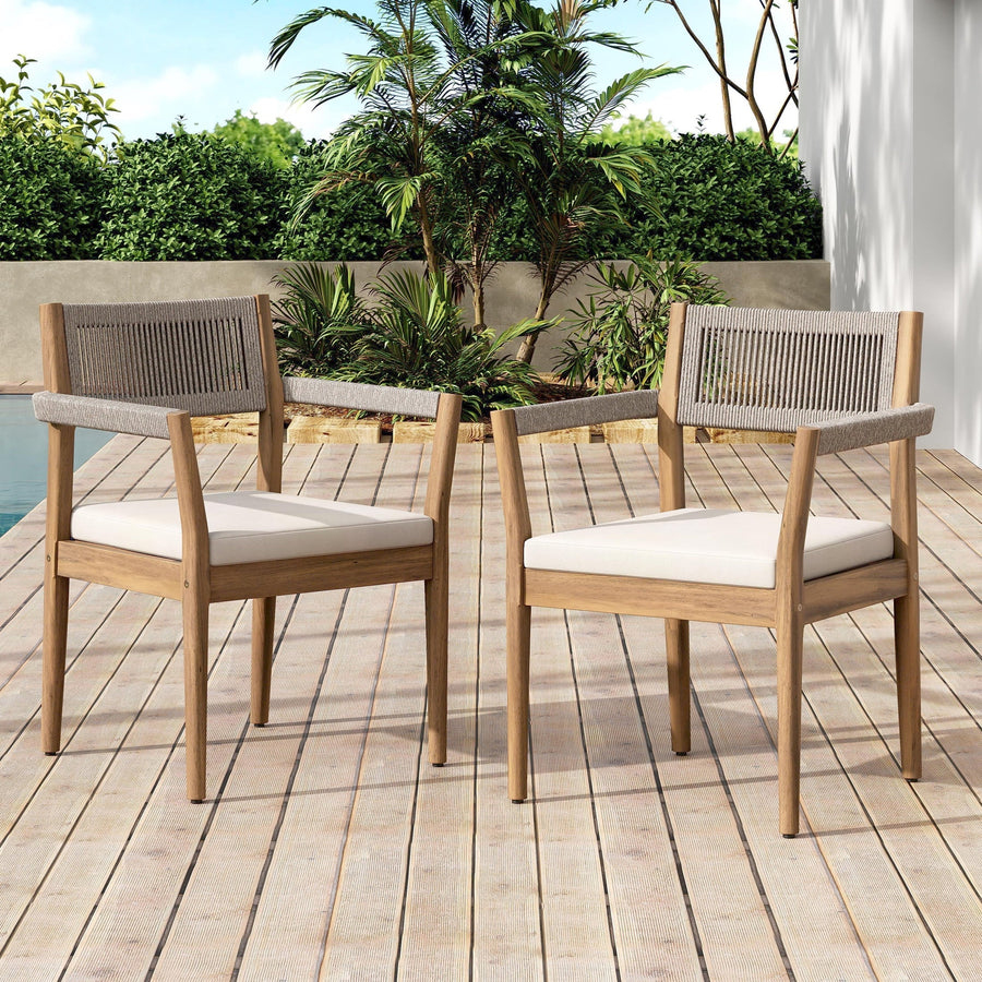 Christopher Knight Home Outdoor Wood Lounge Chair with Woven Rope Accents, Beige Cushion