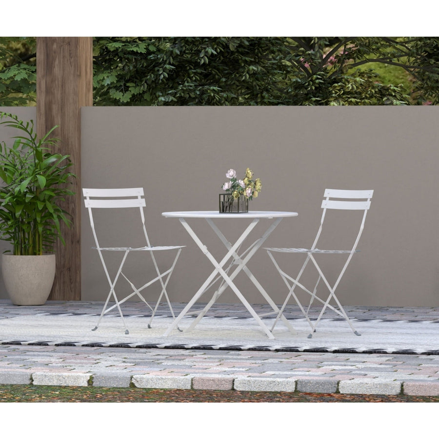 Contemporary Home Living Foldable Outdoor Patio Table with Umbrella Hole - 30" - White
