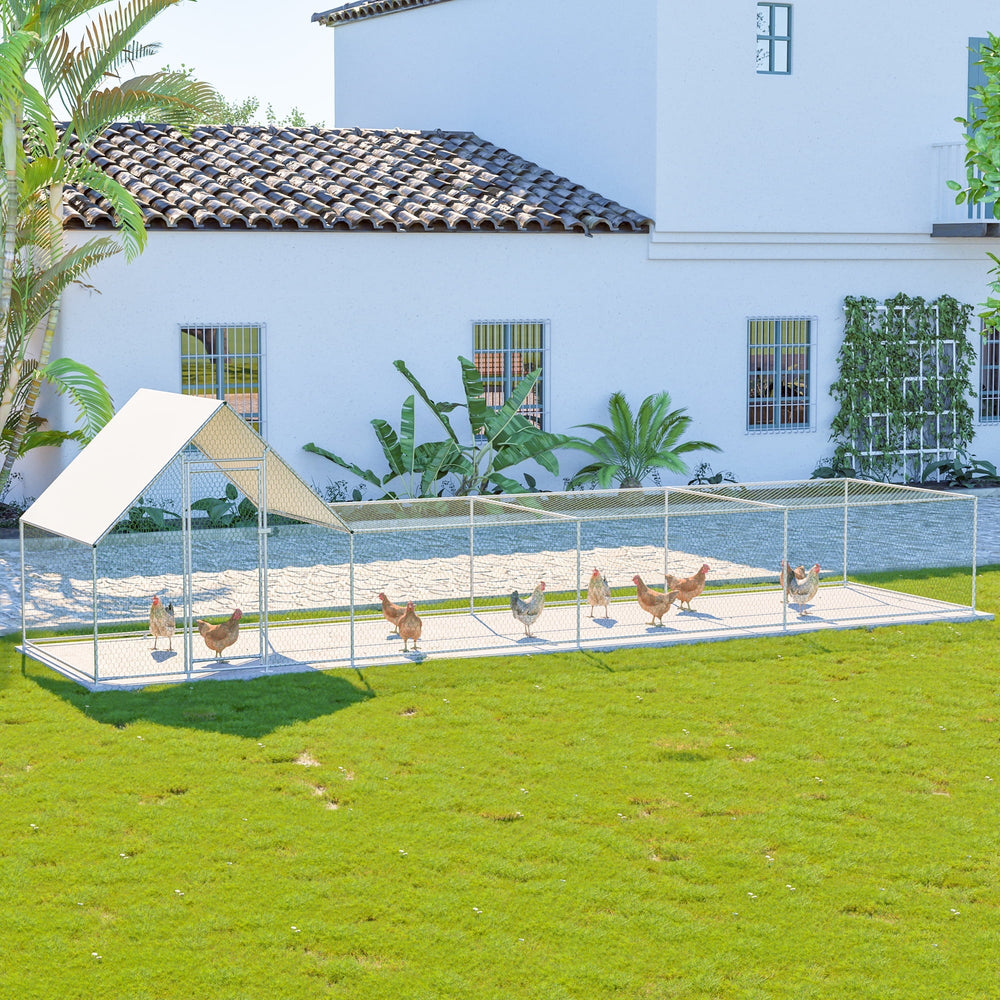 26'Lx6.7'Wx6.6' ft Metal Chicken Coop Run Backyard Hen House Poultry Habitat Cage w/Cover