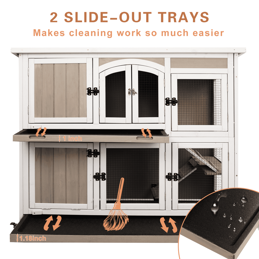 Gowoodhut Guinea Pig Cage Indoor Wooden 2-Story Rabbit Hutch on Wheels for Small Animals, Gray