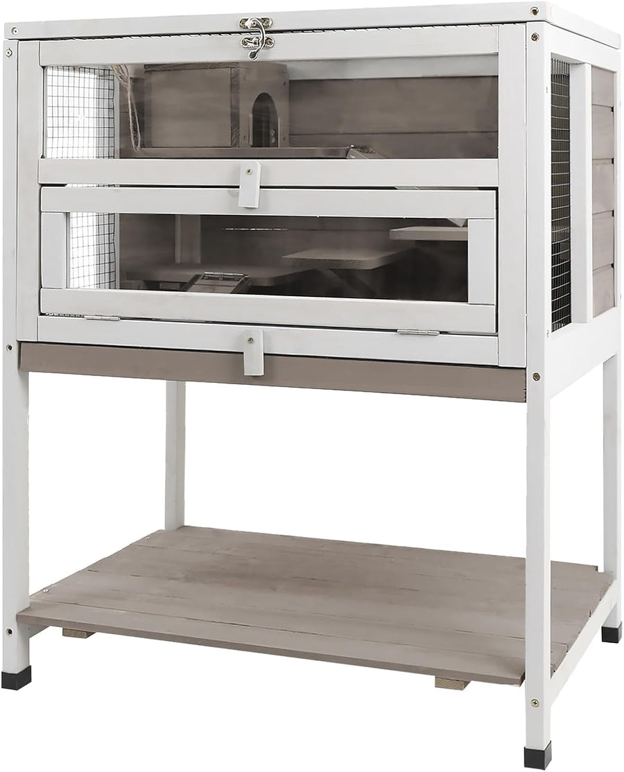 Gowoodhut Elevated Rabbit Hutch Indoor Wooden Bunny House with Detachable Legs
