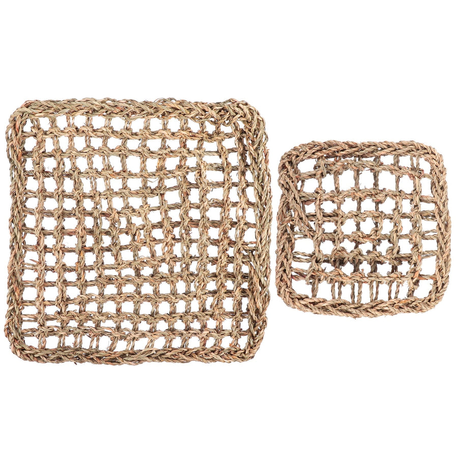 Gratier 2pcs Grass Mat Woven Bed Mat Rabbit Bunny Bedding Chew Toy Bed Play Toy