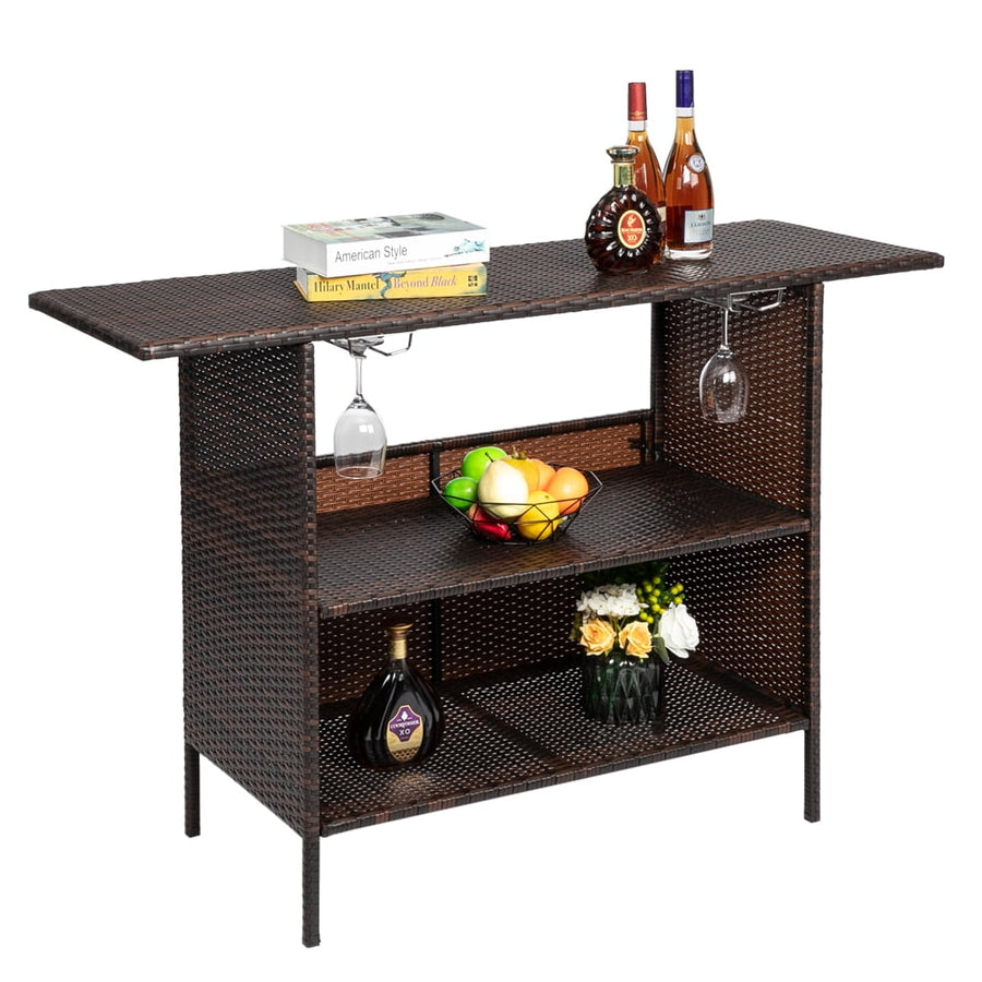 Homy Casa Faux Rattan Side Table for Poolside Lounge or Patio Balcony Relaxation, Brown