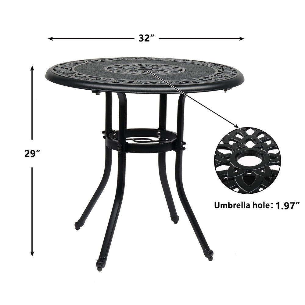 HiiKaa 32 in Cast Aluminum Patio Outdoor Bistro Round Dining Table with Frosted Surface,Bronze