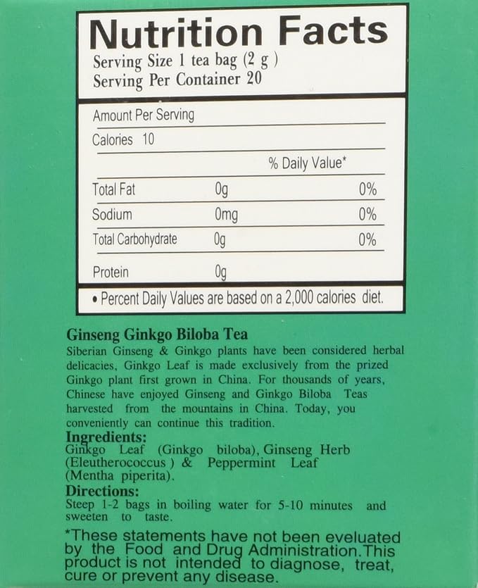 Royal King Ginseng Ginkgo Biloba Tea (20 Bags)
