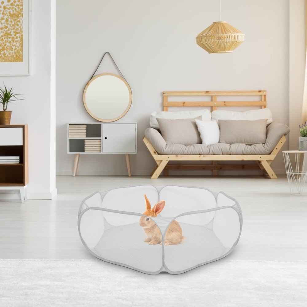 HOOWIFFY Small Puppy Playpen Polyester Light Grey Pet Enclosure Hexagonal Design 1Set