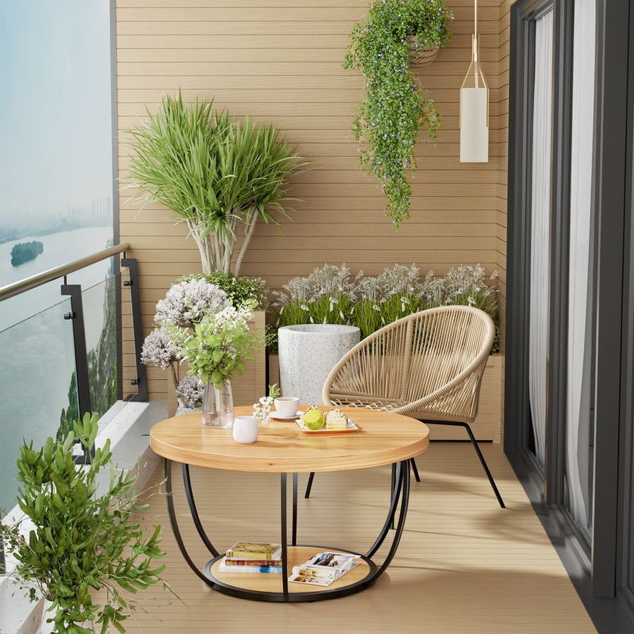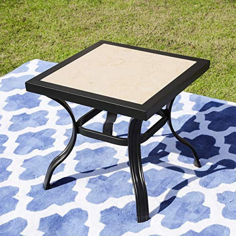 LOKATSE Home 21" Outdoor Square Patio Bistro End Table Metal Steel Legs with Ceramics Top, Black