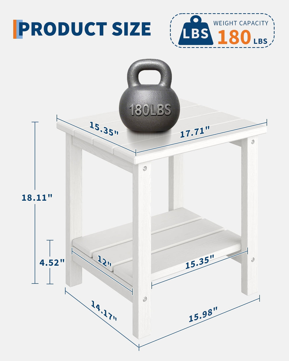 Manufacturing, White Quik Fold Patio Side Table, Resin, One Size