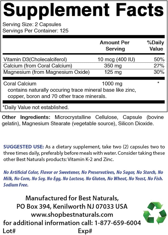 Coral Calcium Plus 1000 mg & Magnesium Oxide 500 mg