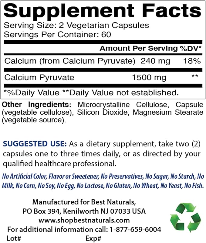 Calcium Pyruvate 750 mg 120 Capsules by Best Naturals (Pack of 2)