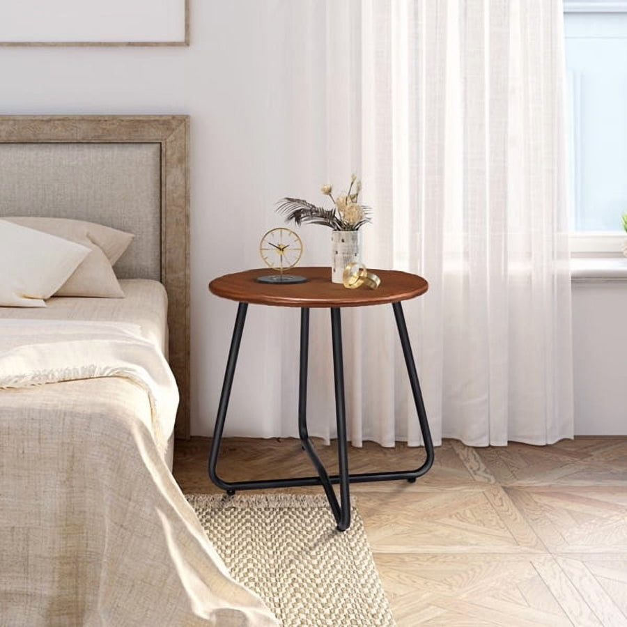 Resenkos Outdoor Side Table, Round Hollow Drum Patio End Table, Steel, Black