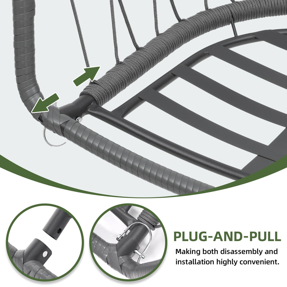 Uforic 3-Seat Outdoor Wicker Porch Swing with LED Lights & Brown Cushions, Patio Hanging Chair