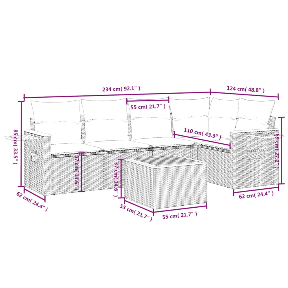 vidaXL Garden Sofa Set Grey PE rattan 6 Piece Set Adjustable Armrests