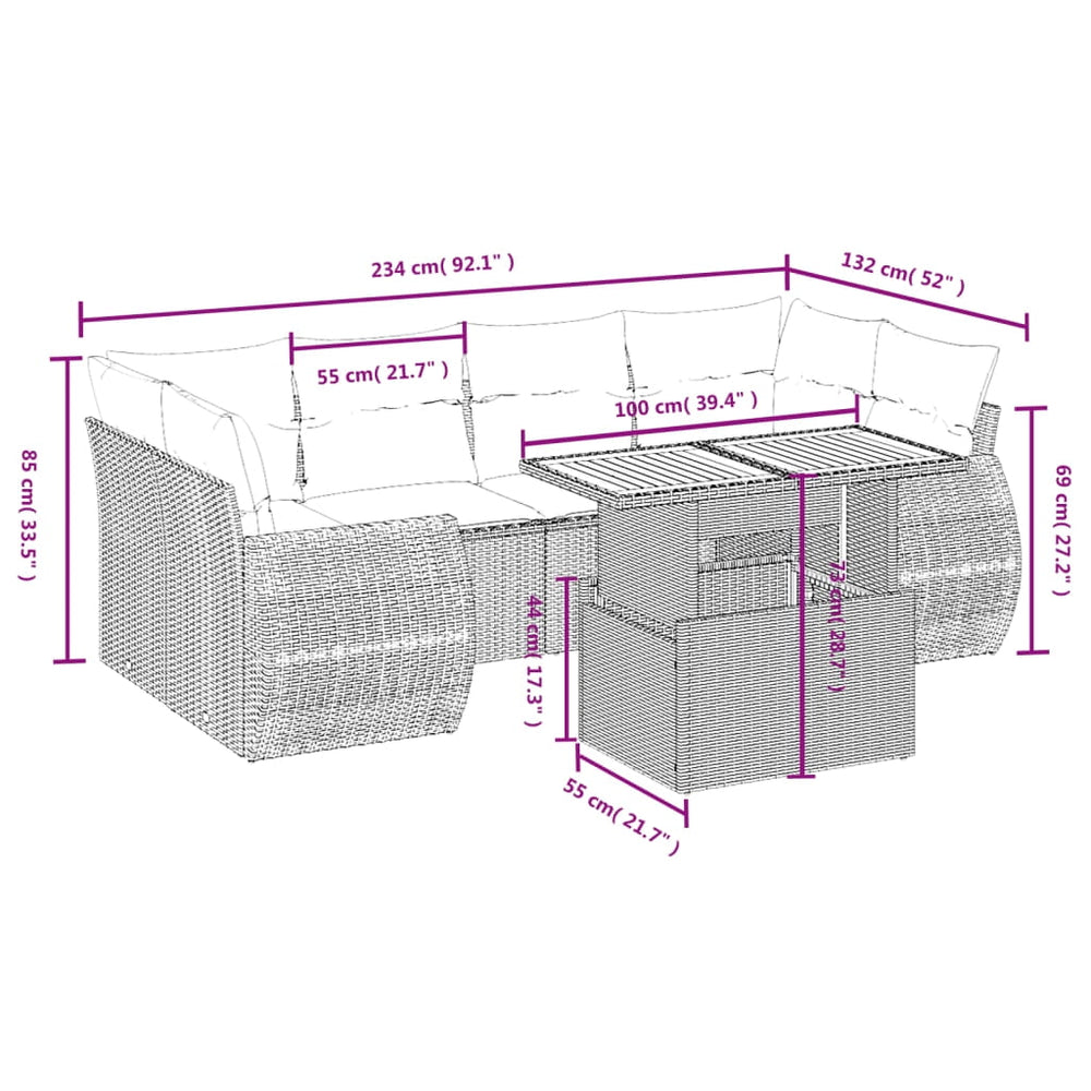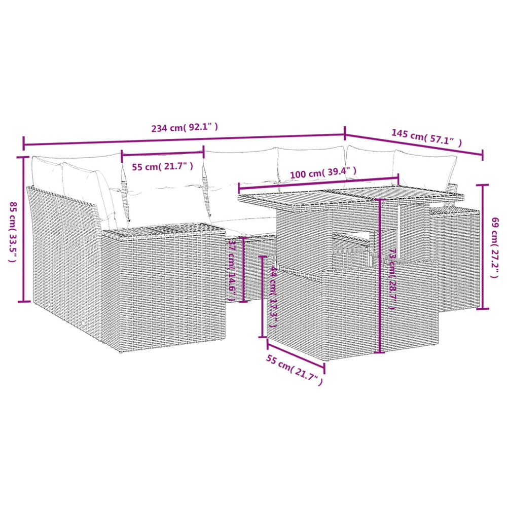 vidaXL Garden Sofa Set Grey PE rattan 7 Piece Set Adjustable Armrests