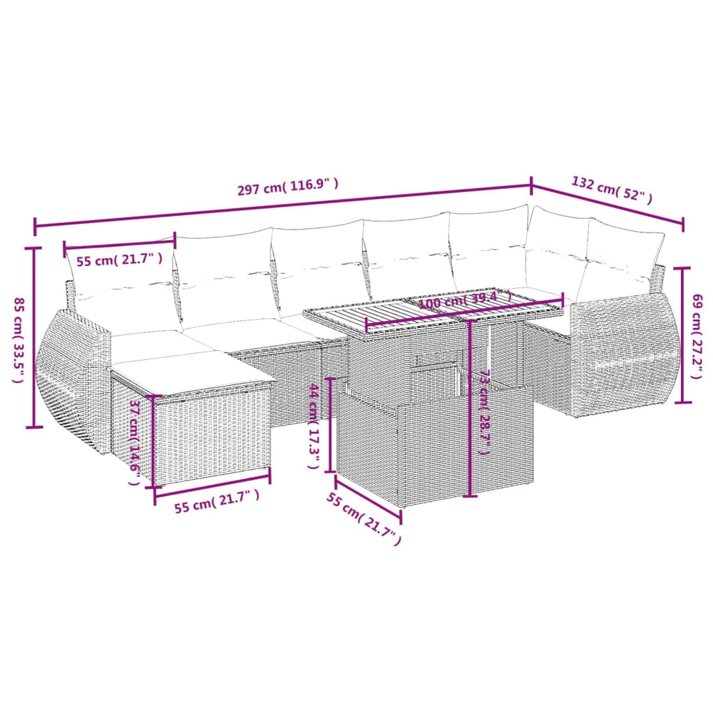 vidaXL Garden Sofa Set Grey PE rattan 9 Piece Set Adjustable Armrests