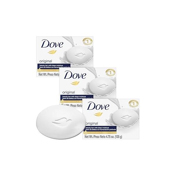 Dove Soap, Original Beauty Bar 3-Pack - 3-in-1 Moisturizing Face, Body & Hand 4.75 Oz Ea