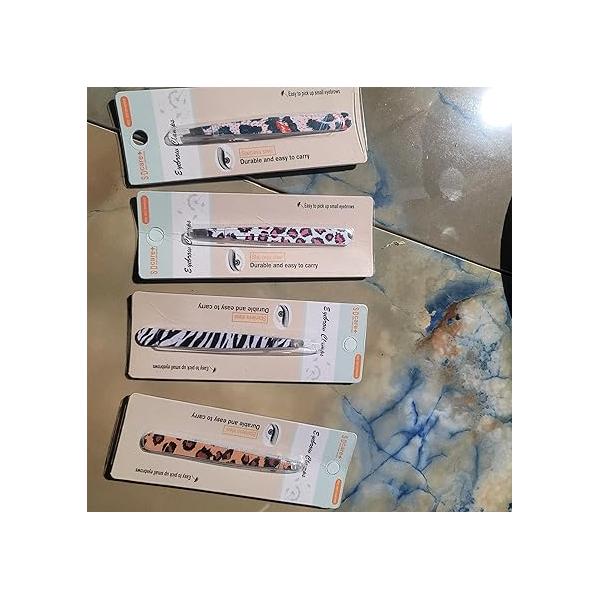 Color Stainless Steel Slant Tweezer Red Leopard Print (ZEBRA-WHITE)