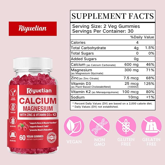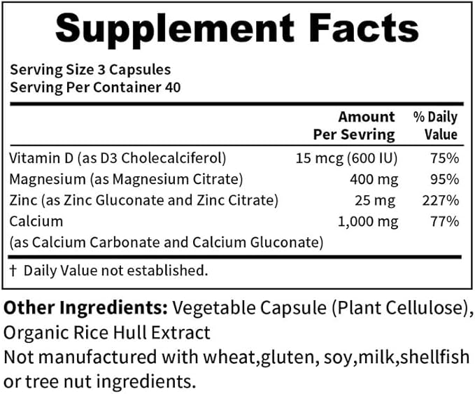 Calcium Magnesium Zinc VitaminD3 Capsules, Support Immune & Bone Health, 120 Count