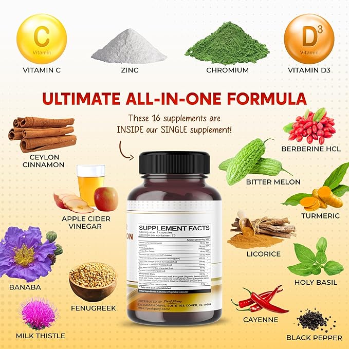 Ceylon Cinnamon Apple Cider Vinegar Berberine Bitter Melon - Made in USA