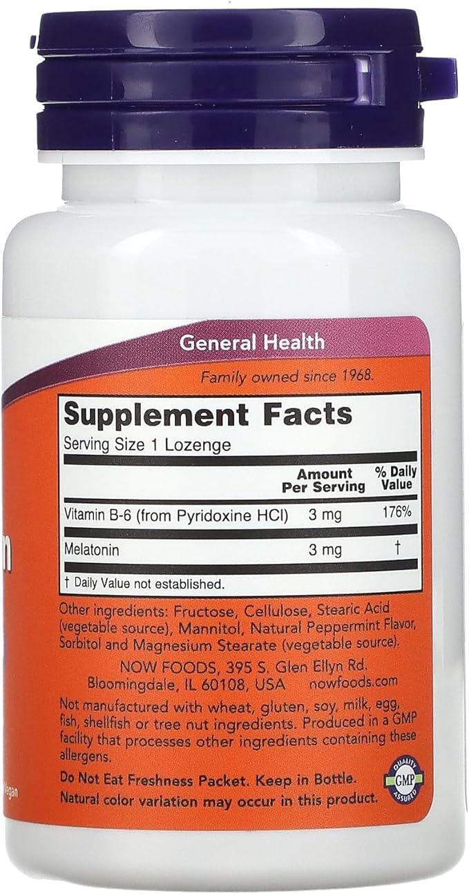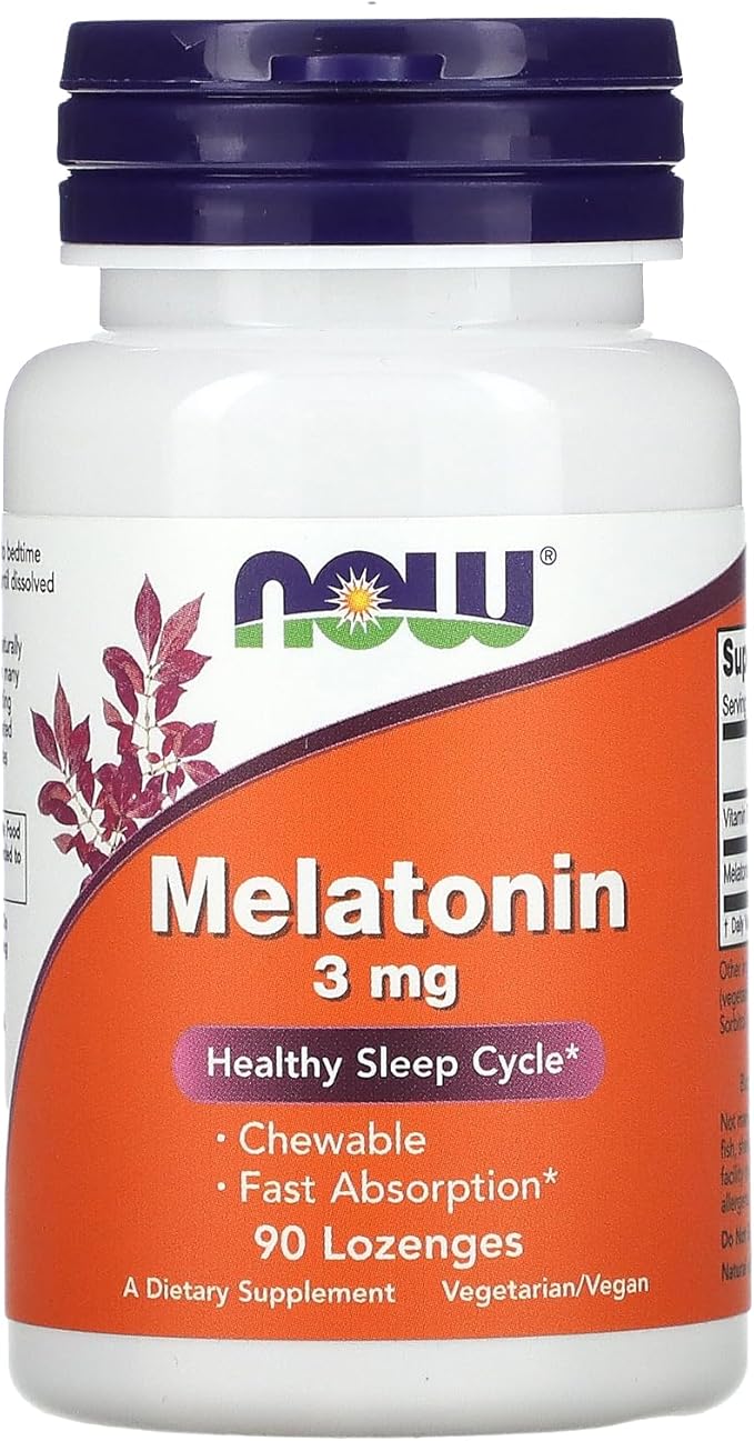 NOW Supplements, Melatonin 3 mg, Free Radical Scavenger*, Healthy Sleep Cycle*, 90 Chewable Lozenges