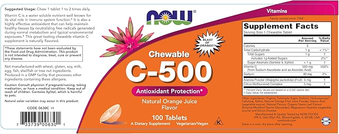Vitamin C-500 Chewable Orange 100 Chewable Tablets