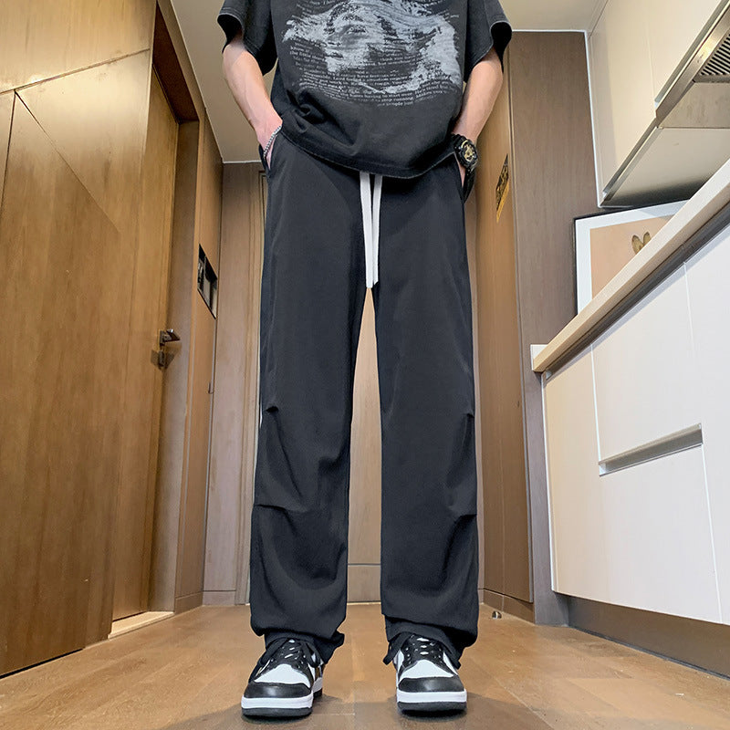 Ladies' Solid Color Transparent Yarn Slit Fashionable Loose Pants