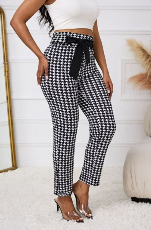 Ladies' Thousand Bird Grid Bow Fashion Casual Pants