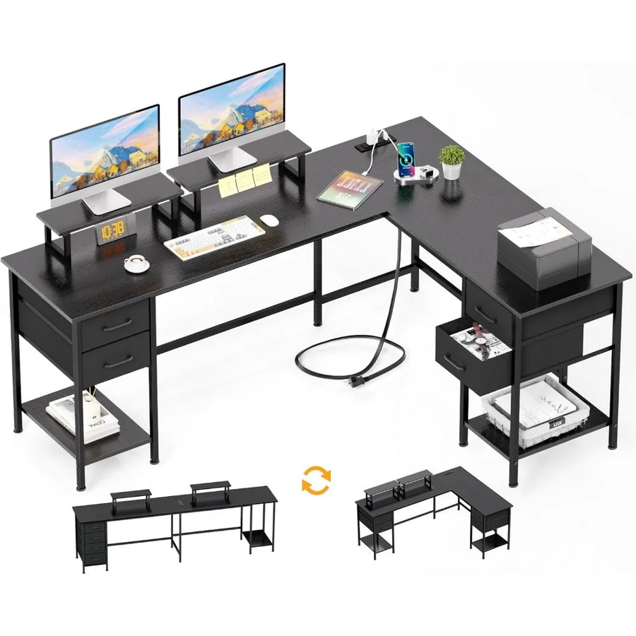 L-Shaped Office Computer Desk with Drawers