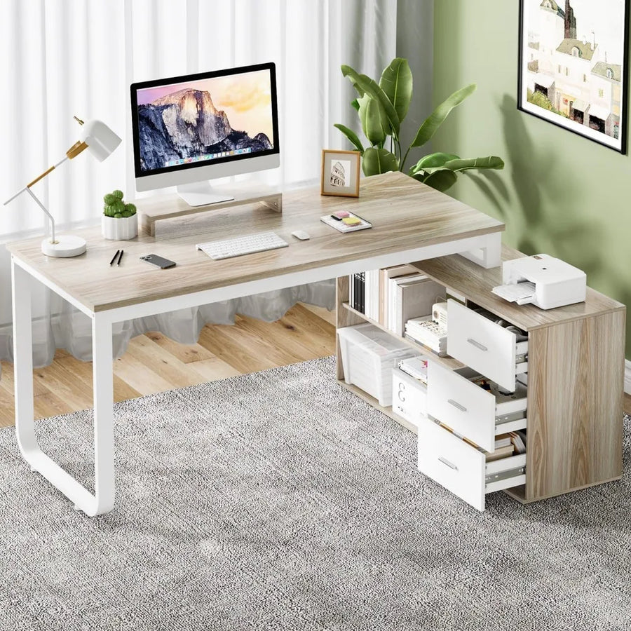 L-Shaped Office Desk with Drawers