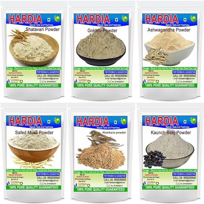 EXPORT STORE Shatavar Safed Musli Gokhru Ashwagandha Kaunch Powder 250 grm combo. 50 Each.