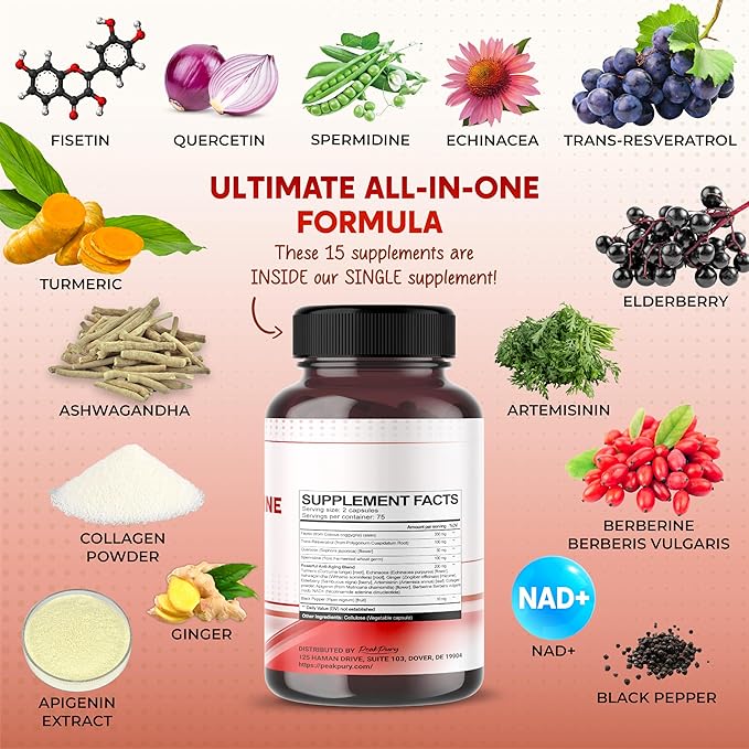 Fisetin Resveratrol Quercetin Elderberry, Echinacea Ashwagandha Turmeric Ginger - Made in USA