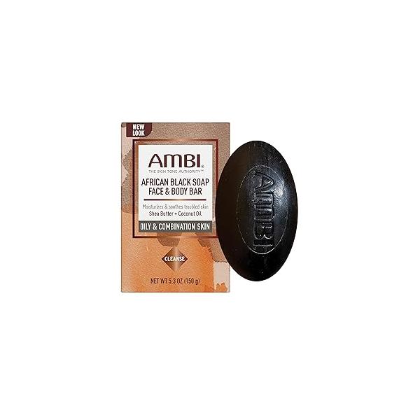 Ambi African Black Soap Face & Body Bar, Cleans and Nourishes Skin, Rinses Clear, 5.3 Ounce