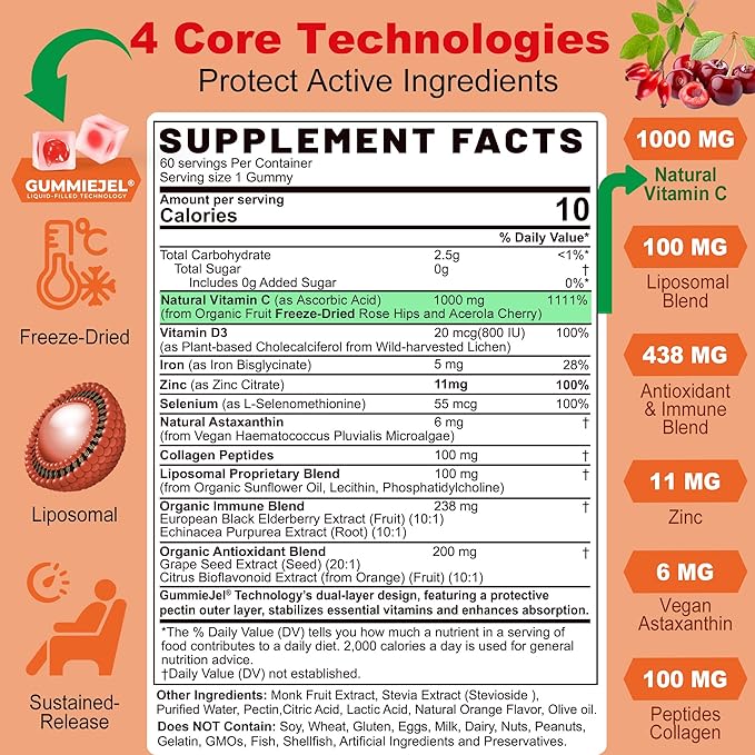 Liposomal Vitamin C 1000mg +Plant-Based Algae Omega 3 1200mg Supplement