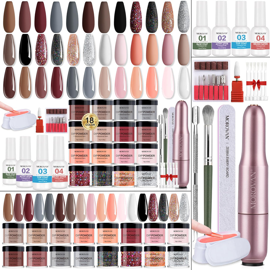 Morovan Acrylic Nail Kit with UV Lamp: Complete Beginner Starter Set with Glitter Acrylic Powder