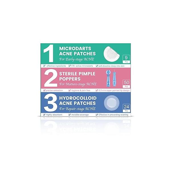 3-Step Microdart Pimple Patches Set - 9 Microdarts Patches, 50 Popper, 24 Hydrocolloid