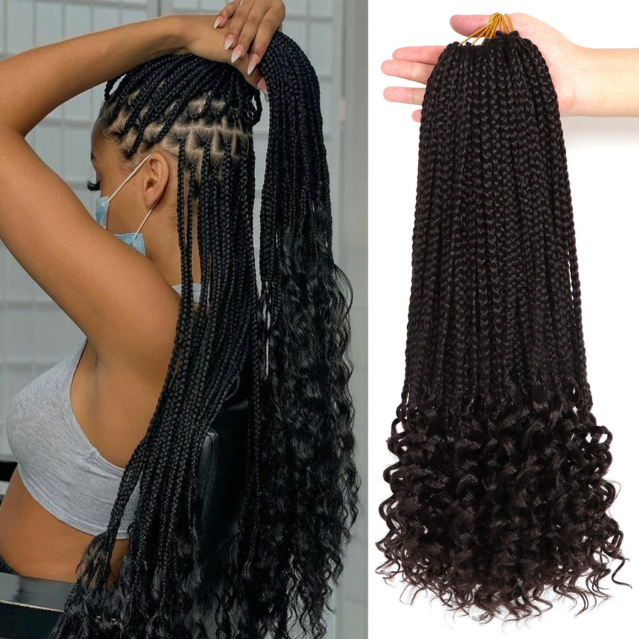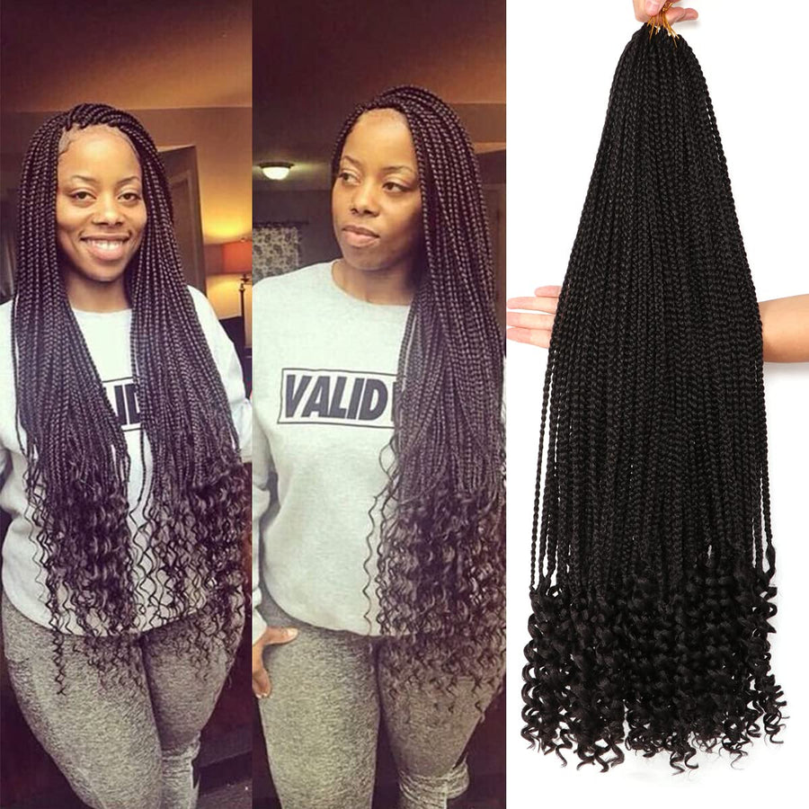 7 Packs 18 Inch Bohemian Goddess Box Braids Crochet Hair for Black Women (18 Inch, 1B#)
