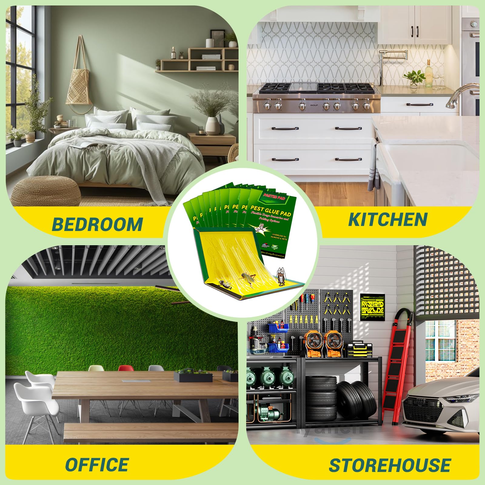 - 【Multi-scene Applicability】Gluetrap is suitable for kitchens, living rooms, bedrooms, hallways, storage rooms, basements, attics, and other home spaces, as well as public or semi-public areas requiring a certain level of cleanliness, such as offices, restaurant kitchens, and storage rooms. Continuous placement and regular replacement under refrigerators or cabinets, near drain pipes, around heating pipes, in wall cracks, and along door frame edges helps in long-term pest management
