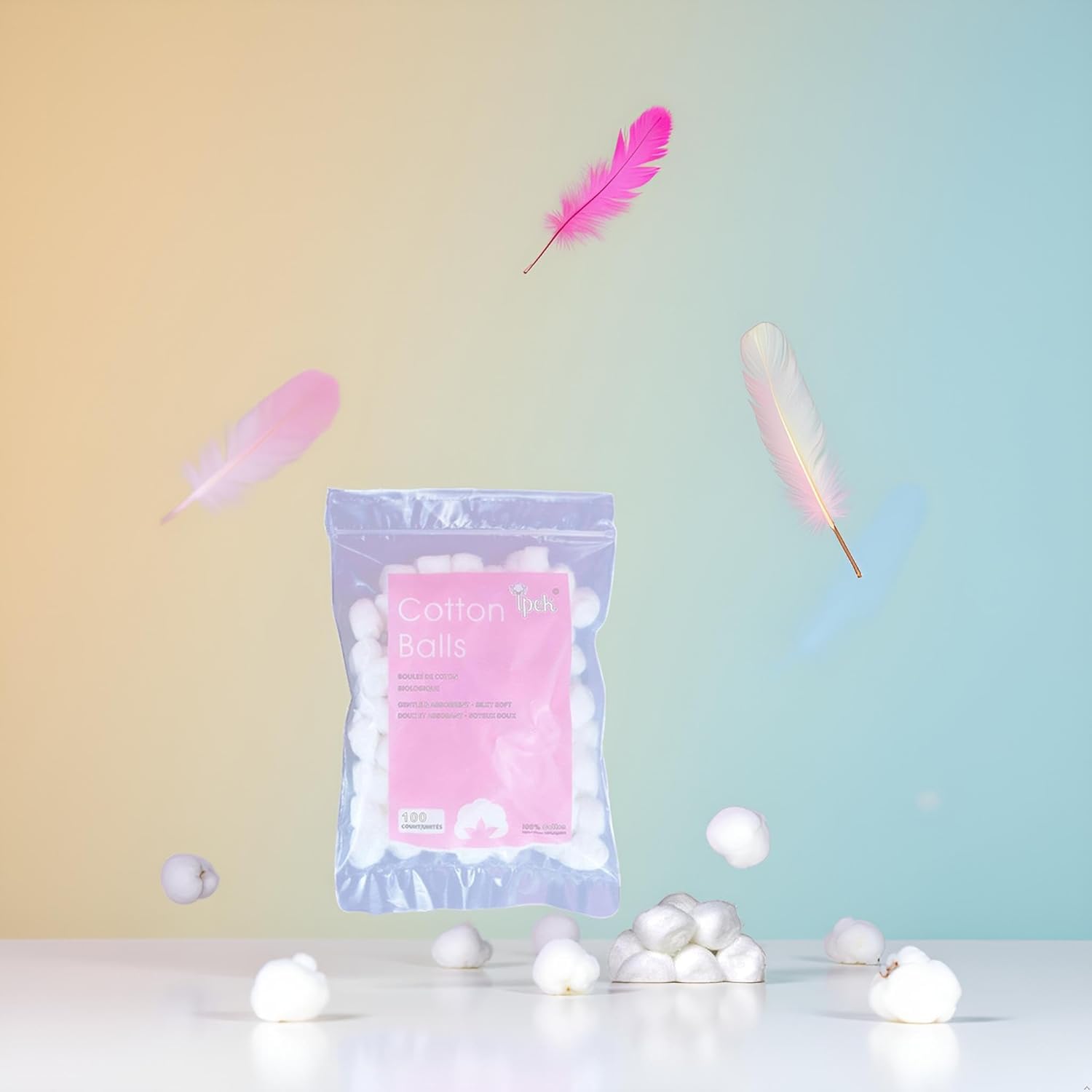 100 Pcs White Cotton Balls - Soft Cotton Wool | Delicate Lightweight Balls and Swabs for Sensitive Skin Household Needs Outdoor Traveling Everyday Use House Necessary Absorbent