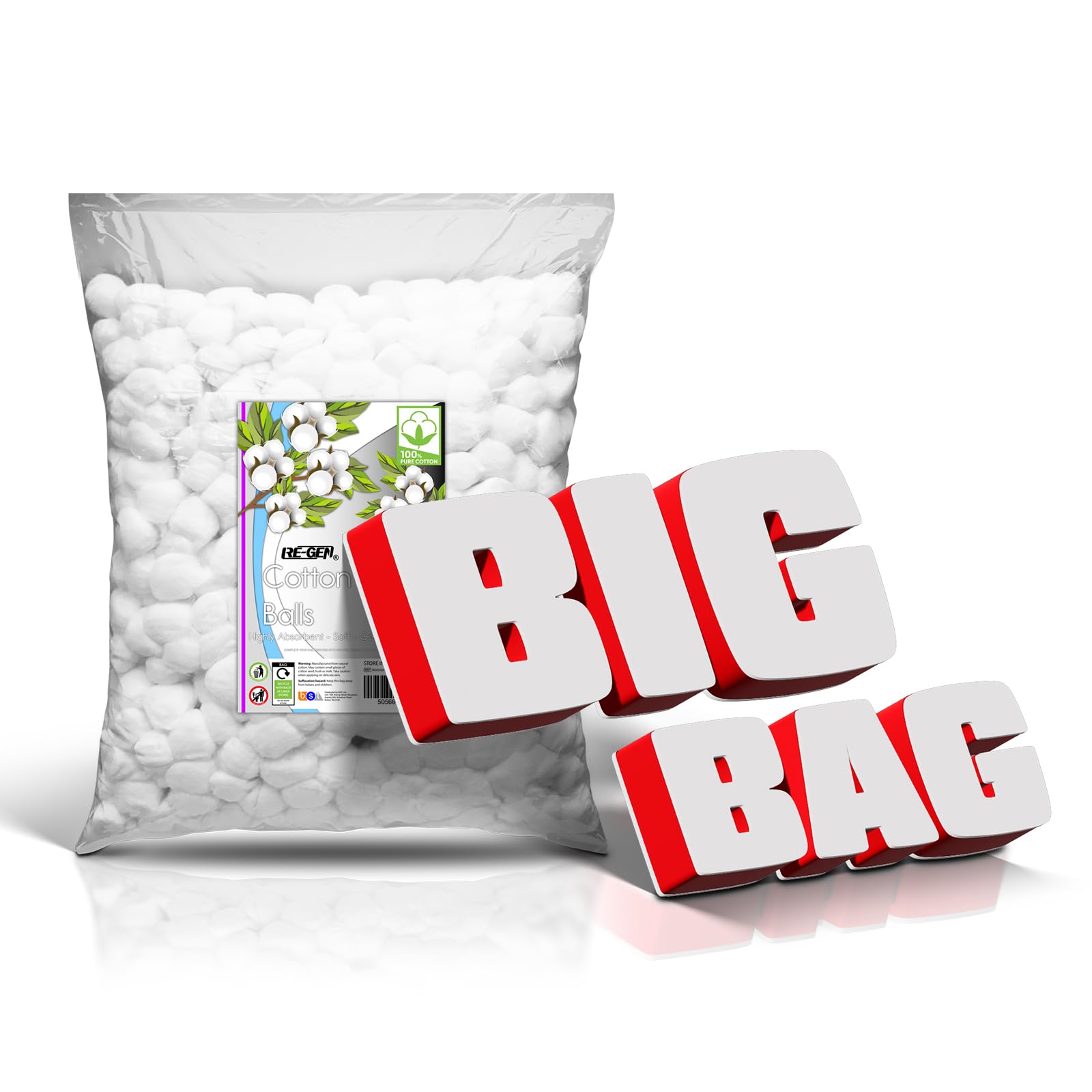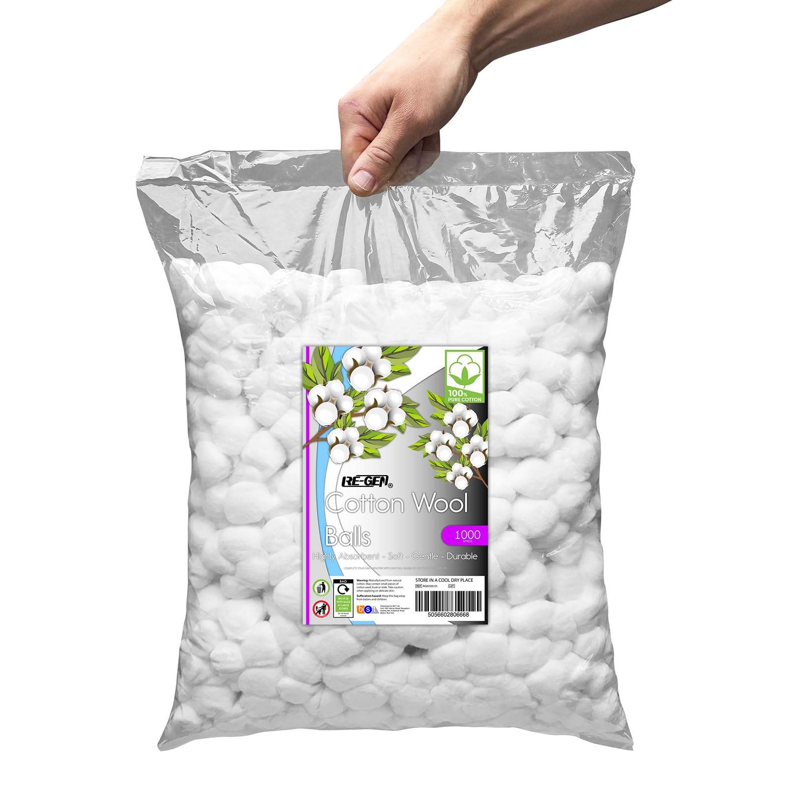 1000pc Pack, RE-GEN 100% Natural Cotton Wool Balls Healthcare Dressing Cleaning Cotton Wool Pads | Ideal for First Aid, Health & Beauty, Personal Care, Cosmetics